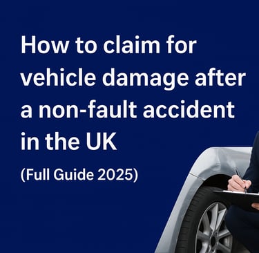 Step 1 — Collect evidence at the scene The more evidence you have, the stronger your claim. If safe to do so, collect: Photos of both vehicles and the accident location Registration number of the other driver Name, phone number and insurance company Witness details (if available) Police reference number (if they attended) Step 2 — Report the accident Report the accident as soon as possible. If you delay, insurers may try to dispute the circumstances. Step 3 — Choose who will handle your claim You have two choices: Option Description Insurance Company Often slower, sometimes affects no-claims Claims Management / Legal Representative (like SurelyClaim) Faster repairs + like-for-like replacement car Many people choose an injury/vehicle claims handler because they arrange everything for you and protect your rights more strongly. Step 4 — Vehicle inspection An engineer will assess the damage and report whether: The car is repairable, or It is a “total loss” (write-off) Step 5 — Repair or replacement If repairable → insurer pays for repair If written off → you receive vehicle value compensation Step 6 — Receive compensation Once liability is confirmed, costs are paid by the at-fault insurer. Do I need to be insured to claim? Yes — but even third-party insurance is enough to make a non-fault claim, because the other driver’s insurer is responsible for paying.